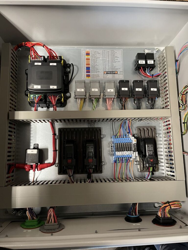 Trequip programmeert en bouwt deze besturingssystemen voor zowel onze eigen machines als voor externe partijen. De systemen kunnen bestaan uit een display, kabelbomen en radiografische bediening, volledig afgestemd op de specifieke toepassing van de machine of trailer.