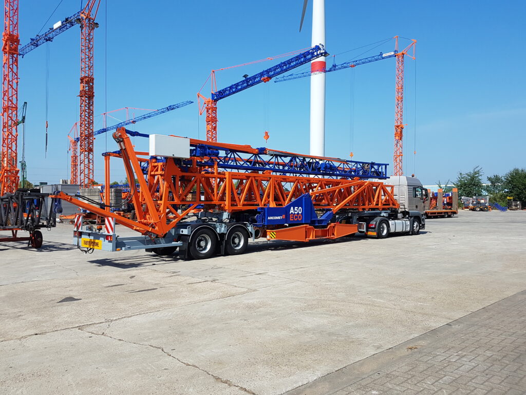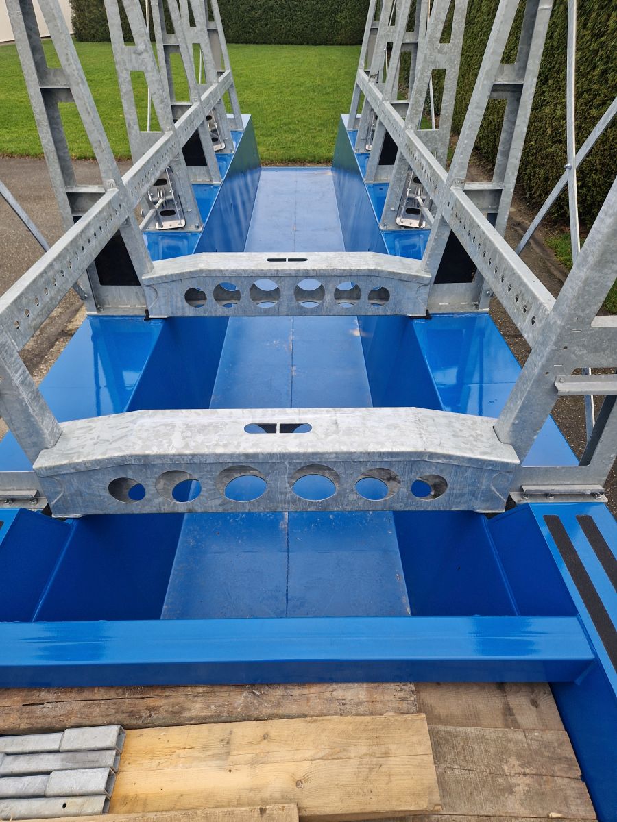 Voor een fabrikant van snelbouwkranen ontwikkelden we een universeel assenstel waarmee verschillende types kranen vervoerd kunnen worden, gecombineerd met 2 types nekken. - 2-assige oplegger